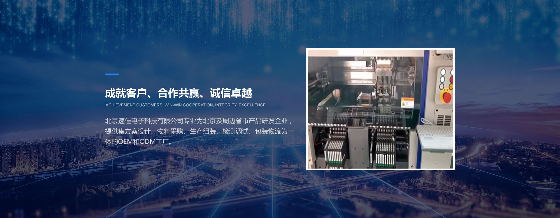 北京速佳電子科技有限公司專業為北京及周邊省市產品研發企業,提供集方案設計、物料采購、生產組裝、檢測調試、包裝物流為一體的OEM和ODM工廠。
